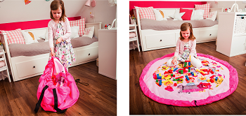 שק הצעצועים משמש כמשטח פעילות לילדים וגם למשטח אחסון וארגון המשחקים ברגע.