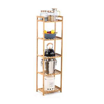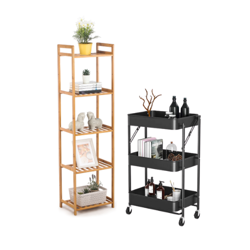 מעמד מדפים מבמבוק 5 קומות + עגלת שירות מעוצבת 3 קומות|