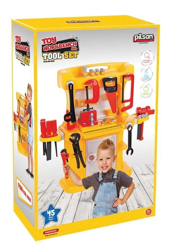 עמדת כלי עבודה לילדים | שולחן כלי עבודה לילדים | כולל 45 חלקים הכוללים מבחר כלי עבודה אביזרים | עשוי פלסטיק איכותי | 03-538