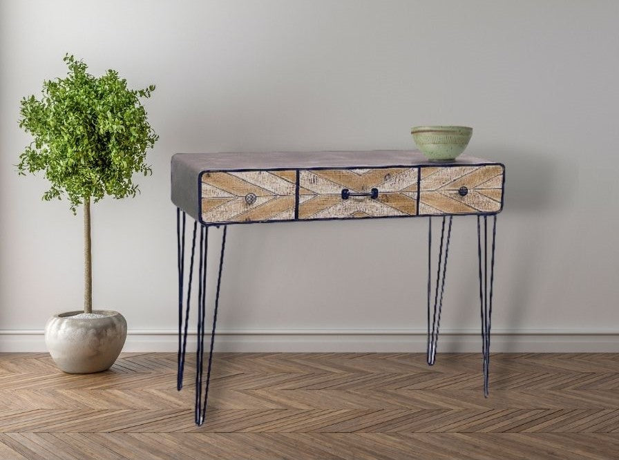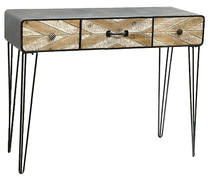 לקונסולה 3 מגירות עץ טבעי עם חזית בצורת אלכסונים