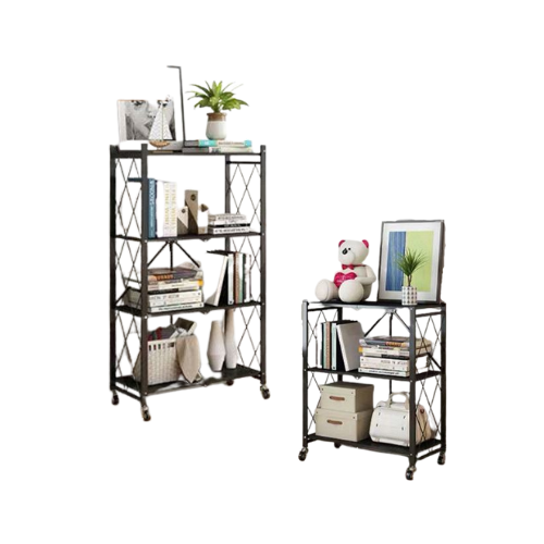 מדפי מתכת 4 קומות מתקפלים ניידים על גלגלים. פתרון אחסון גאוני