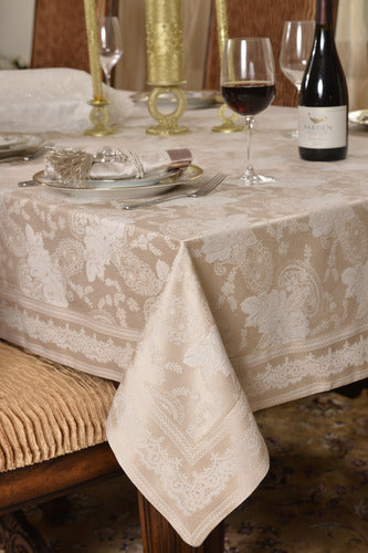 המפה מעוצבת עם תחרה יוקרתית רקומה בחוטי לוקרס סביב המפה ובמרכזה,המעניקה מראה מהודר לשולחן ולחדר האוכל.