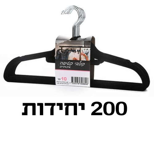 קולב קטיפה, קולב בגדים, קולבים לבגדים, קולב קטיפה איכותי סט 200 יחידות בצבע שחור