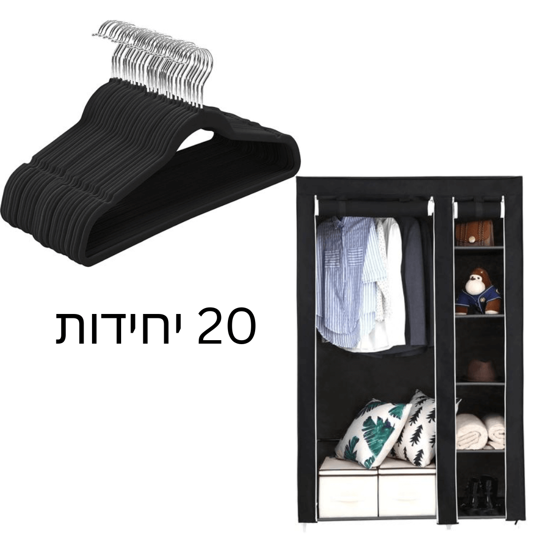 ארון תלייה + ארון נעליים + 20 קולבי קטיפה | ארון בגדים תלייה | ארון נעליים 9 מדפים | קולבי קטיפה| RH-6022/ktifa20B