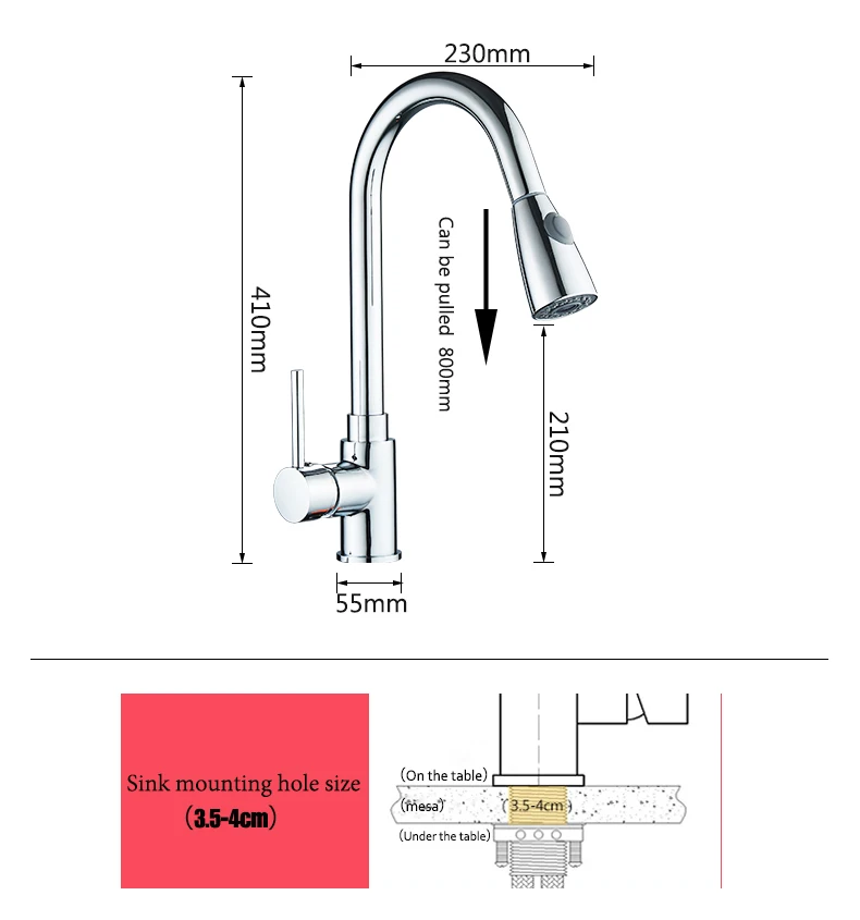 ברז מטבח קלאסי ב-3 צבעים. עם פיה נשלפת. משלוח חינם