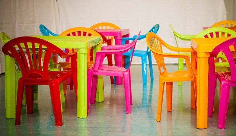 שולחן + 4 כיסאות לילדים כולל ידיות - עשוי פלסטיק איכותי במגוון צבעים