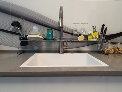 מסייע בארגון אזור הכיור וייבוש של מספר כלים באותו הזמן.
